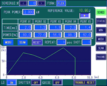 以雷射能量(J)、平均功率(W)來做測試・顯示 |